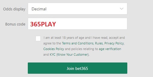 Australian players can type in Bet365 Referral Code 365PLAY.